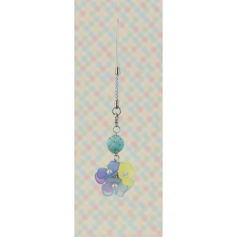 【キット作り方つき】爽やかな初夏カラーの花びらビーズを組み合わせるだけで簡単に作れる根付です。ちりめん玉もポイントです。