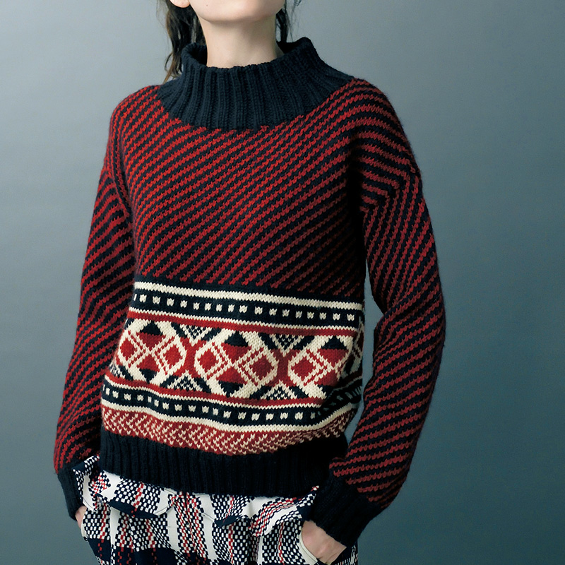 材料:オリムパス手あみ毛糸 ツリーハウス パラス 紺(419)245g/7 玉、赤(411)175g/5 玉、生なり(401)45g/2 玉。