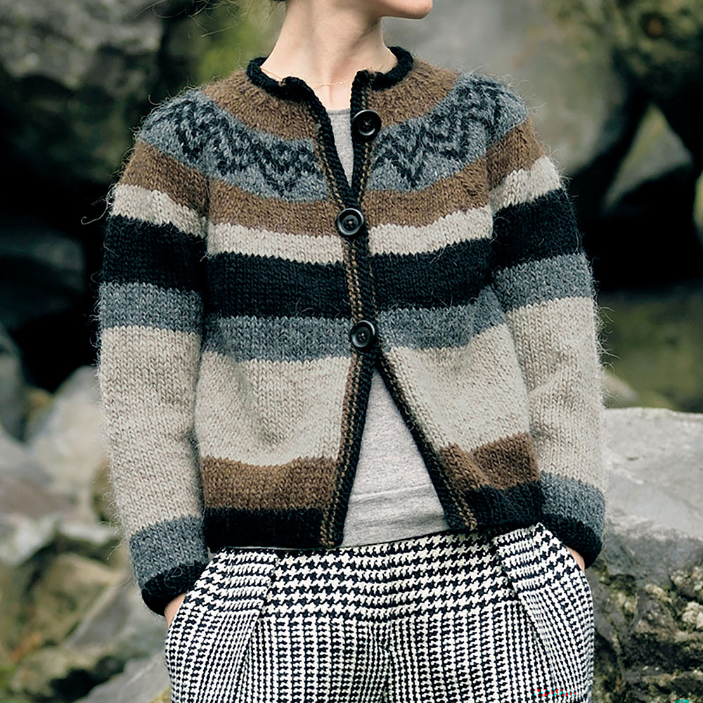 ゆったり、ほっこりしたイメージのロピを、小さめのシルエットでシャープにまとめて。パンツにもスカートにも、茶系でも黒系でも合わせやすい、おしゃれなジャケットになりました。