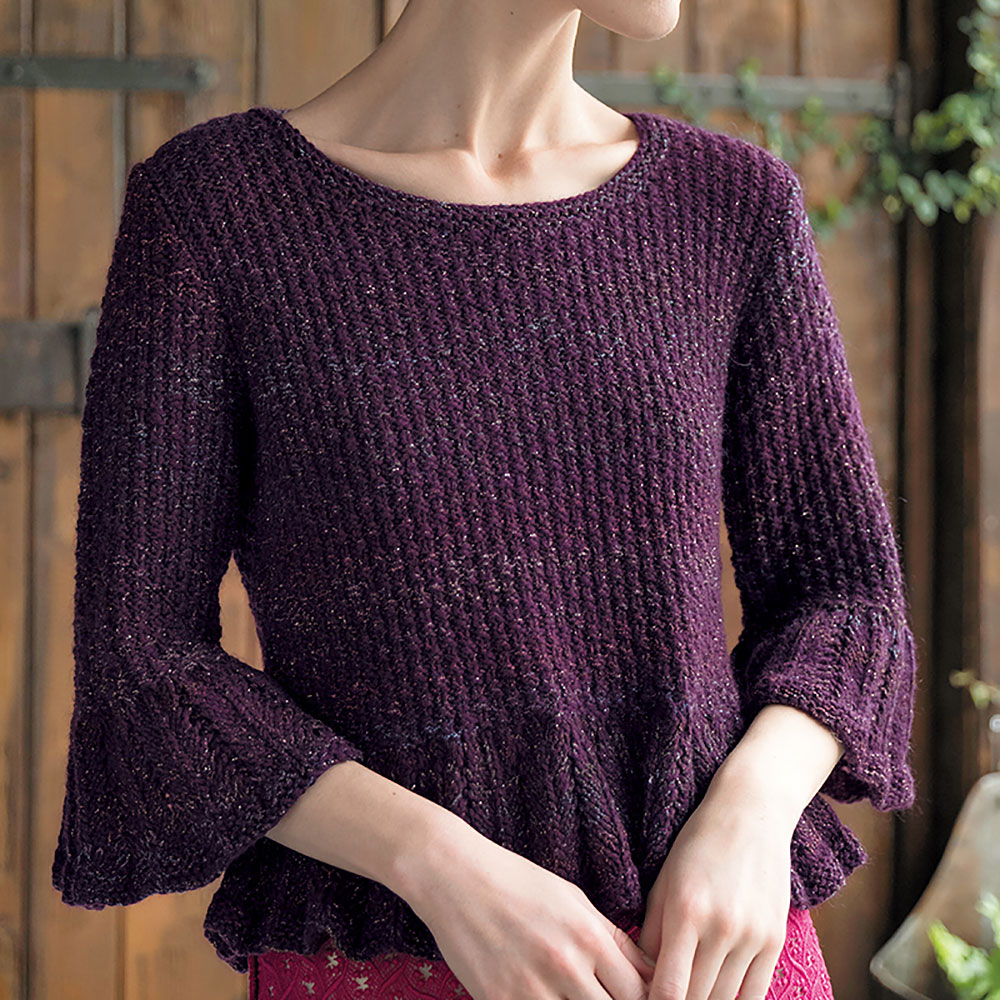 大切な人とのお食事時に、ワイングラスを持った手がきれいに見えるようにと、色と形にこだわったデザイン。シーンを考えて編むなんて、素敵!ゴージャスな別衿と合わせて華やかに着こなして。
