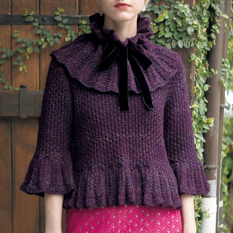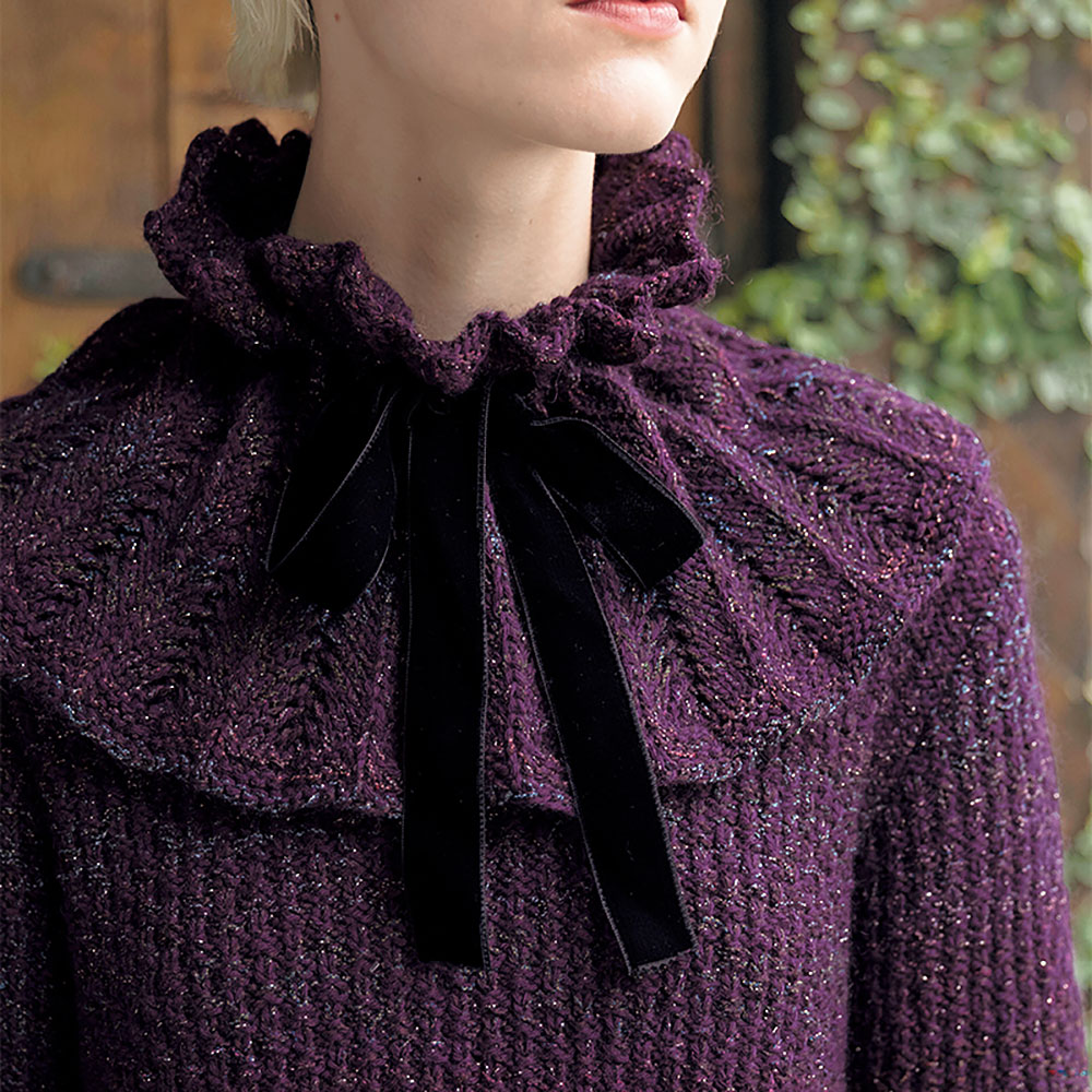 ゴージャスな衿は、コートの上に合わせても華やか。 大切な人とのお食事時に、ワイングラスを持った手がきれいに見えるようにと、色と形にこだわったデザインのプルオーバーと合わせて着こなしてみては。< br>このレシピはつけ衿のみです。