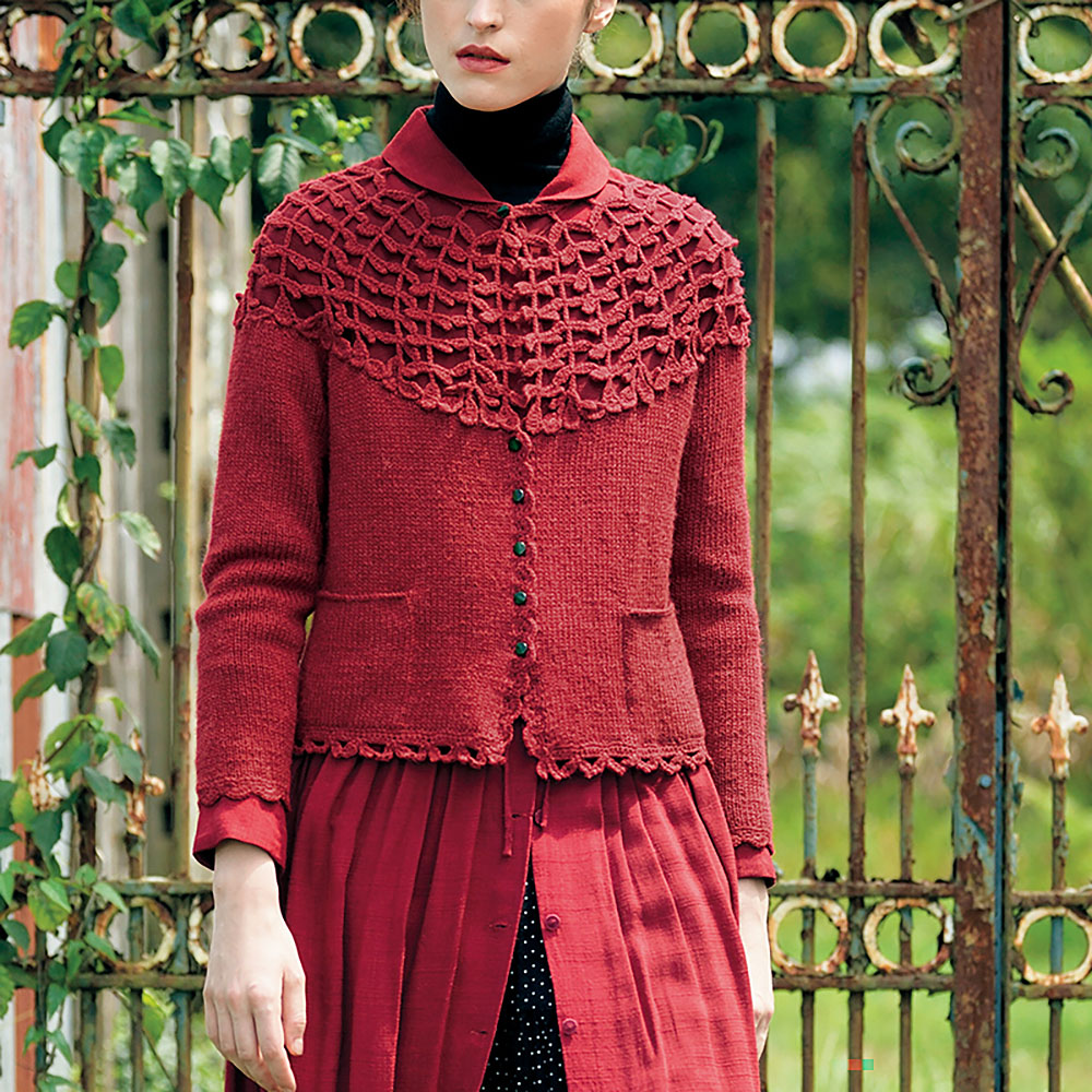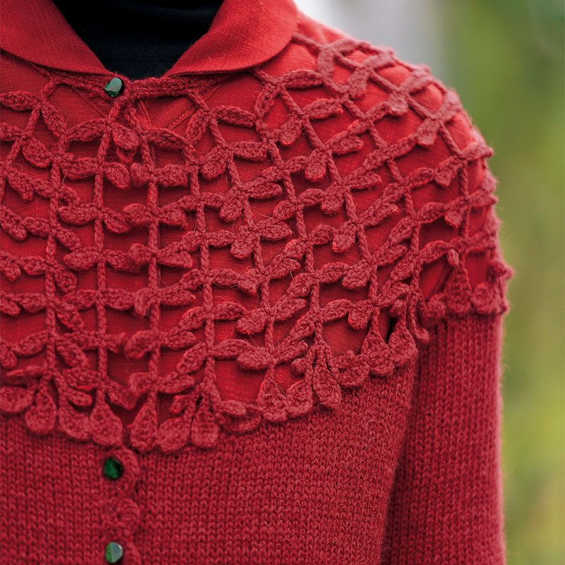 〈レシピ〉リーフモチーフの丸ヨークカーディガン