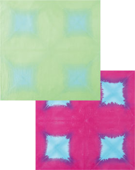 ボックス形のグラデーションを4ブロック配置した新デザインのむら染め布を2色セットにしてお届け。1枚でベースにしたり、分割してミニキルトにしたり、様々なアレンジが楽しめます。「シェイドカラーコレクション」や「手染めスカイ」と組み合わせても。