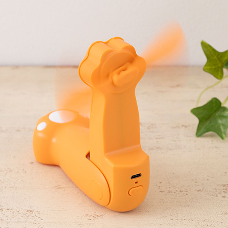 【完成品】暑くなる夏に可愛く役立つ、ネコの手型の携帯扇風機です。散歩や買い物、庭仕事などの屋外で、また冷房の届きにくい屋内でと様々な場所で活躍します。