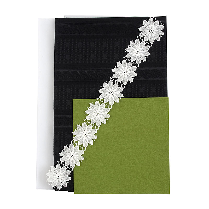 ボーダーの布セットです。レースのモチーフとフェルトがついています。