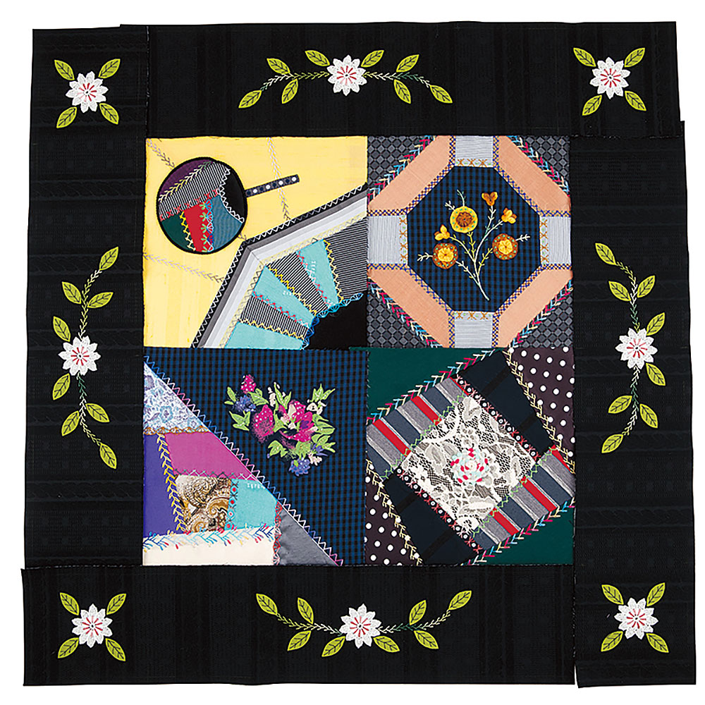 【限定30個】【材料セット】宮谷真知子さんによる、クレイジーキルトのタペストリーを作る連載。第5回目の布セットです。別売の「クレイジーキルト用ステッチ糸セット」でステッチして飾ります。お手持ちの糸でアレンジしても。