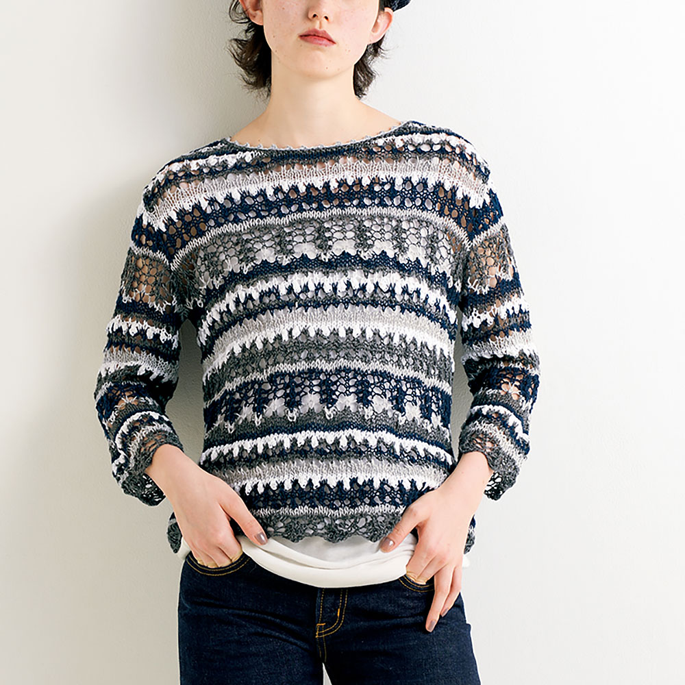 透け感が軽やかなボーダーをカジュアルに。細かな編み地の変化を楽しんで。