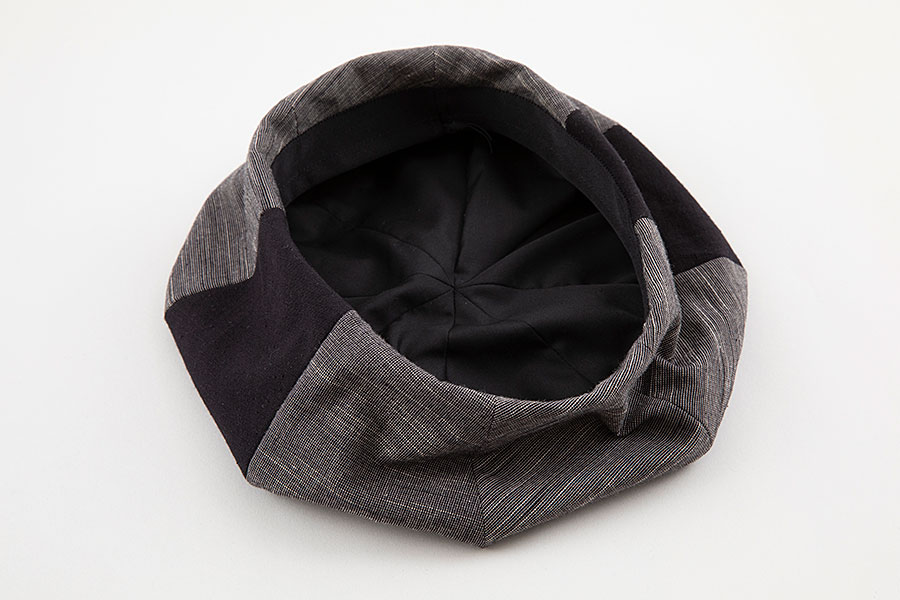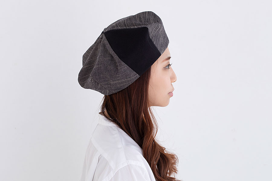 久留米絣のふっくらベレー[グレー系]:内側にゴムを通し、サイズの調節ができるデザイン。