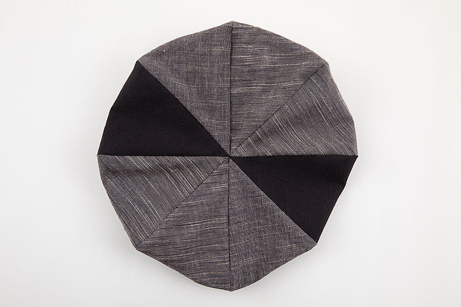 久留米絣のふっくらベレー[グレー系]:久留米絣の無地と柄を組み合わせて。
