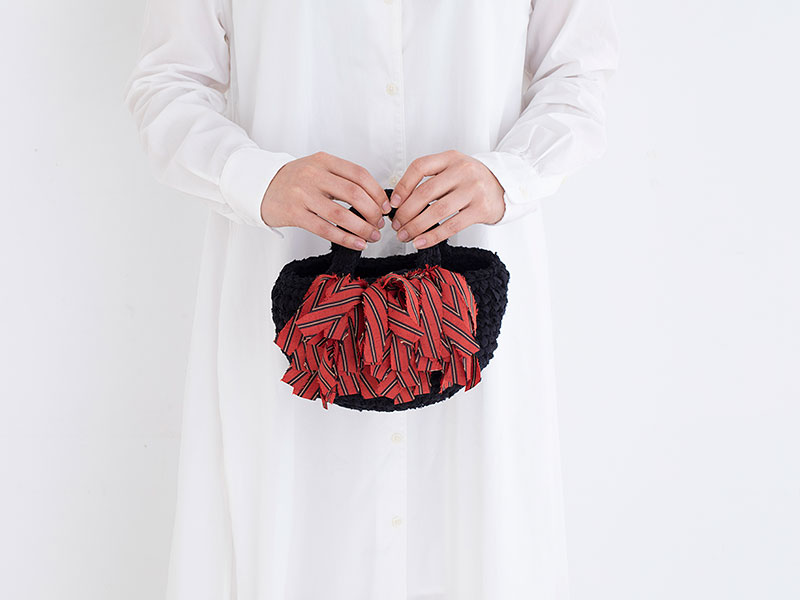 扇柄のキモノヤーン×黒のバッグ