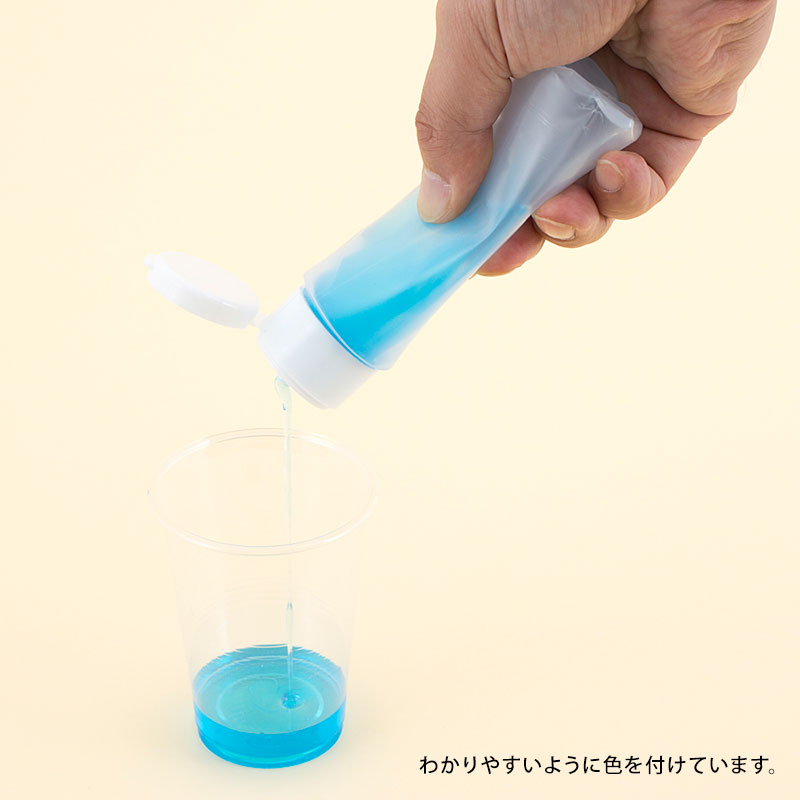 硬化剤容器は二重剥離構造によって中味と外気の接触を減少させたソフトボトル。黄変の進行を遅くして透明な作品作りが安心して楽しめます。封を開けた物はできるだけ早く使用しましょう。