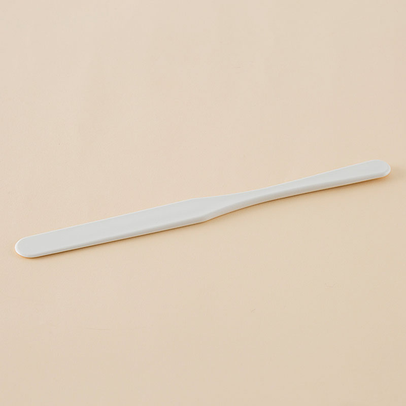 プラント樹脂を混ぜる際に使用する道具。混ぜる部分が幅広なので、混ぜやすく均等に攪拌することができます。アルコールで拭くと何度でも使用できます。