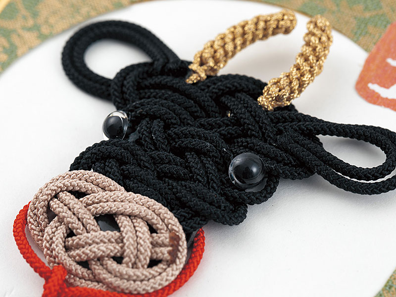 【キット作り方つき】ちりめん布を使って、まったく縫わずに作れる根付のキット。可愛らしいウシ2色を2個ずつ、計4個作れる材料が入っています。