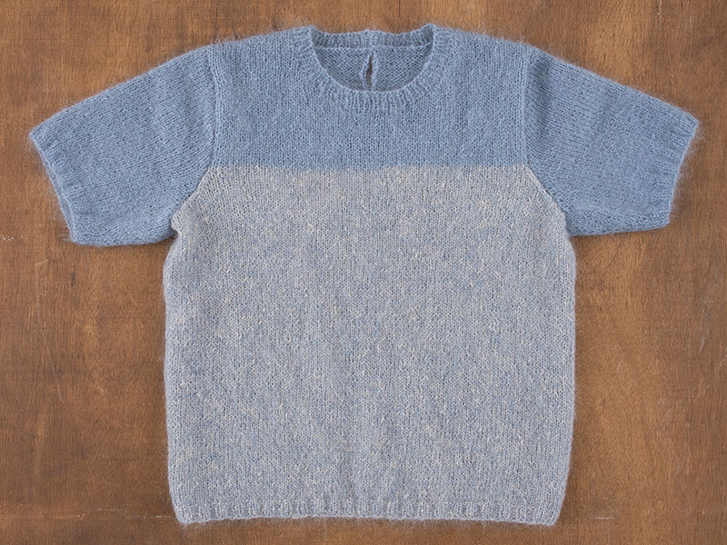 【キット作り方つき】MOHAIRで編む、軽く暖かで肌触りのいい半袖プルオーバーです。シンプルなメリヤス編みで、ツートーンのシックな色合わせが楽しめます。中級の方へ。