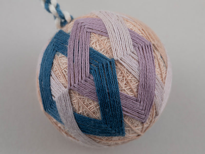 「菱つなぎ」柄の小さなてまりをラリエットに仕立てます。
