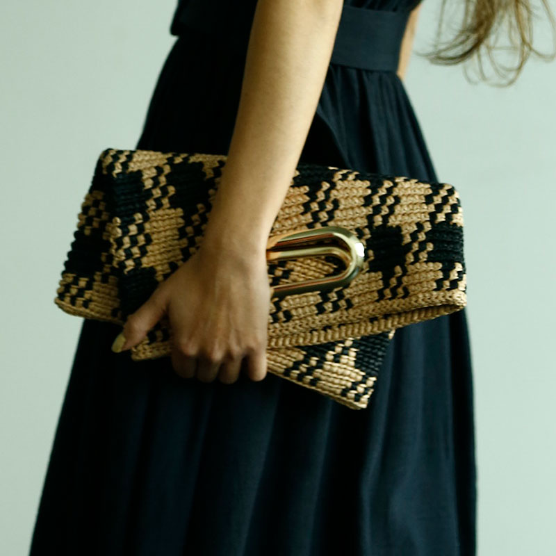 昔から変わらないオーセンティックな千鳥格子を、かぎ針編みのクラッチ&ハンドバッグに。