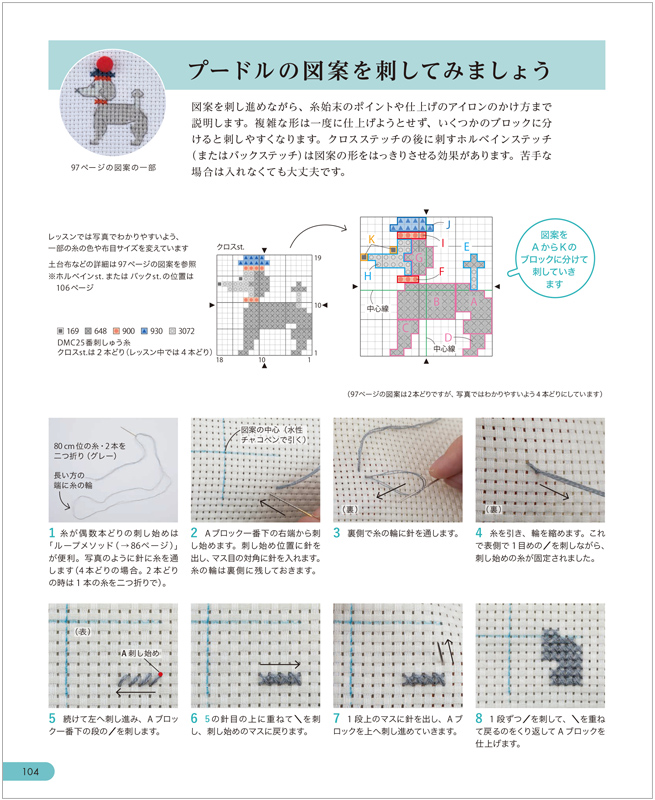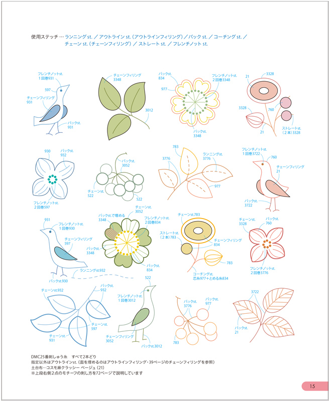 初心者のためのベストセラー本の作品を大幅リフレッシュした増補改訂版。ヨーロッパ刺しゅうの基本ステッチ15種の刺し方ポイントや糸端の始末、裏側までわかりやすく解説しています。クロスステッチは基本の刺し方説明をさらに充実させました。これから刺しゅうを始めたい方におすすめの1冊です。