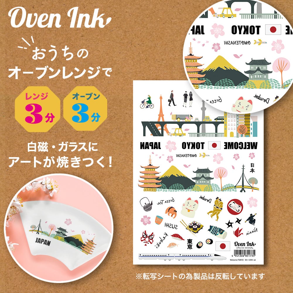 ※オーブンインクはシールではありません。電子レンジ&オーブンレンジを使用して絵柄のみを転写し焼き付けできる新素材シートです。