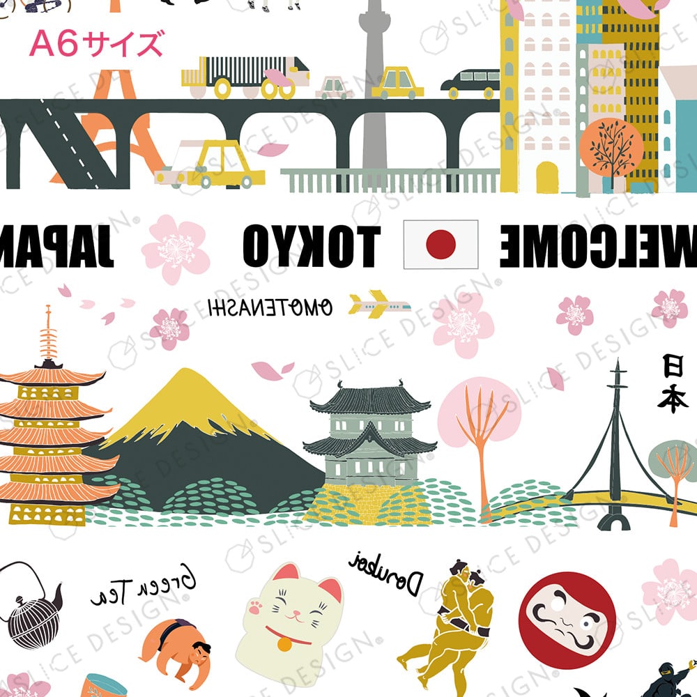 アイコニックな東京モチーフが詰まった一枚 日本土産の制作にもおすすめです。