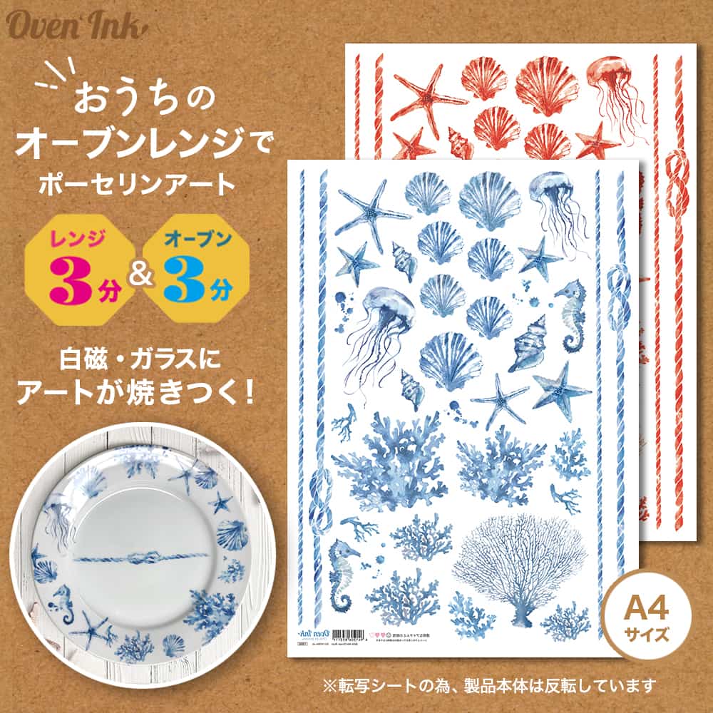 ※オーブンインクはシールではありません。電子レンジ&オーブンレンジを使用して絵柄のみを転写し焼き付けできる新素材シートです。