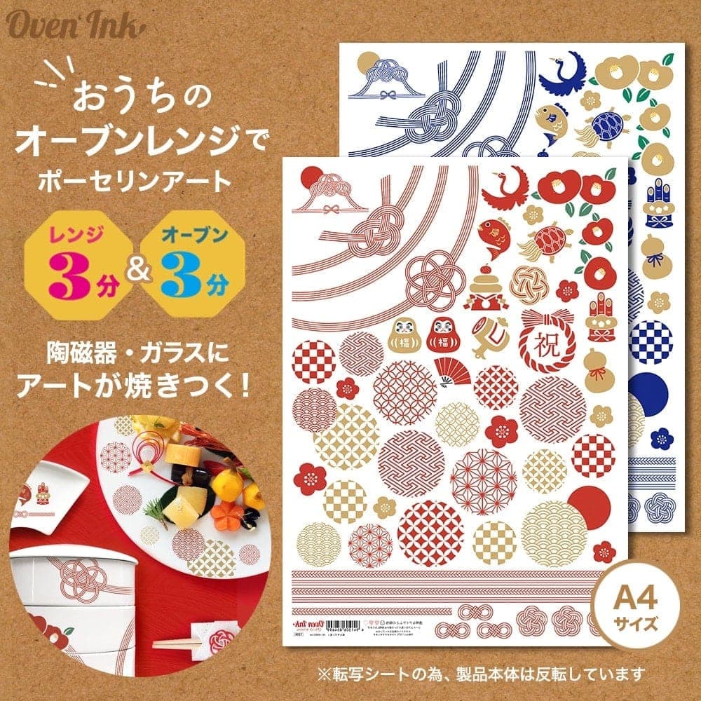 ※オーブンインクはシールではありません。電子レンジ&オーブンレンジを使用して絵柄のみを転写し焼き付けできる新素材シートです。