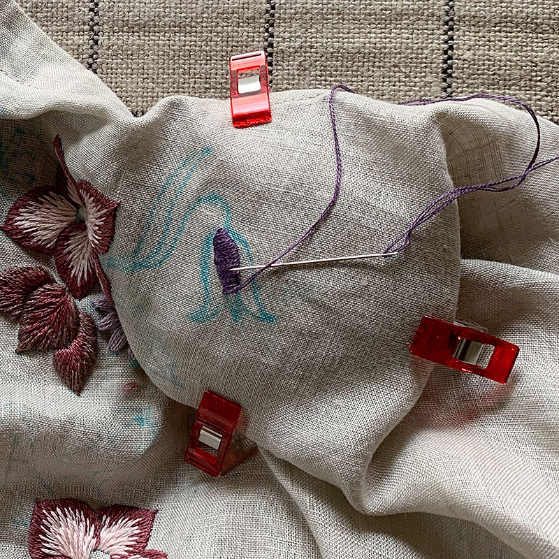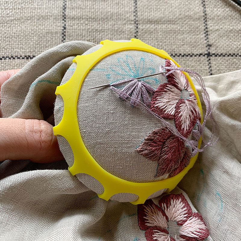 ▲ドームに針をあて、布をすくうことで、楽にステッチができます。