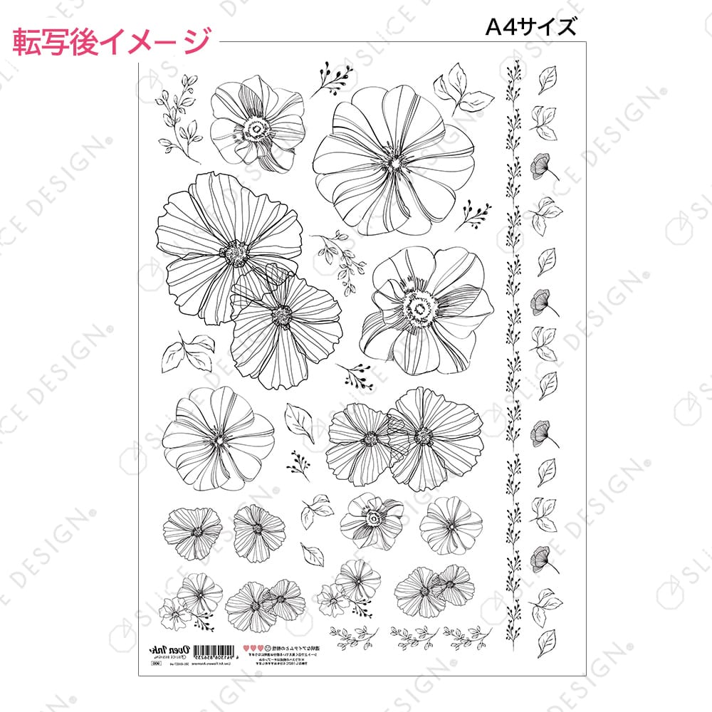 大小ハンドペイントで描かれたような繊細な線画のアネモネが美しいシート。重ねたり、アルコールインクアートと合わせたり、色付けしたりと多様にお楽しみいただけます。