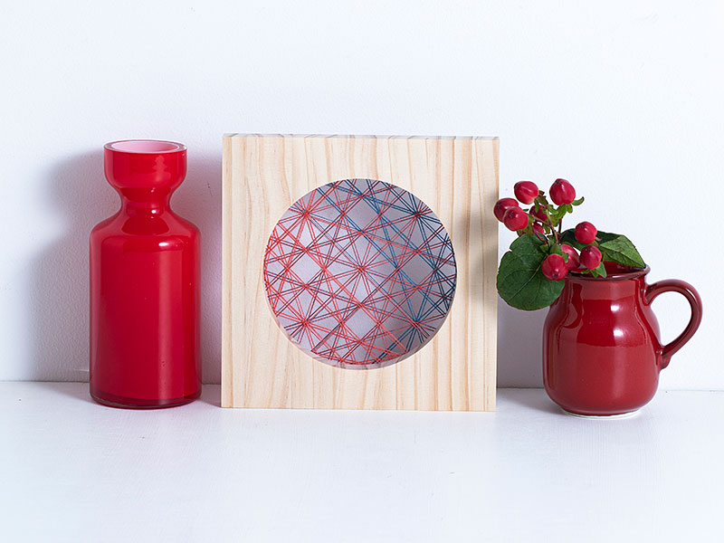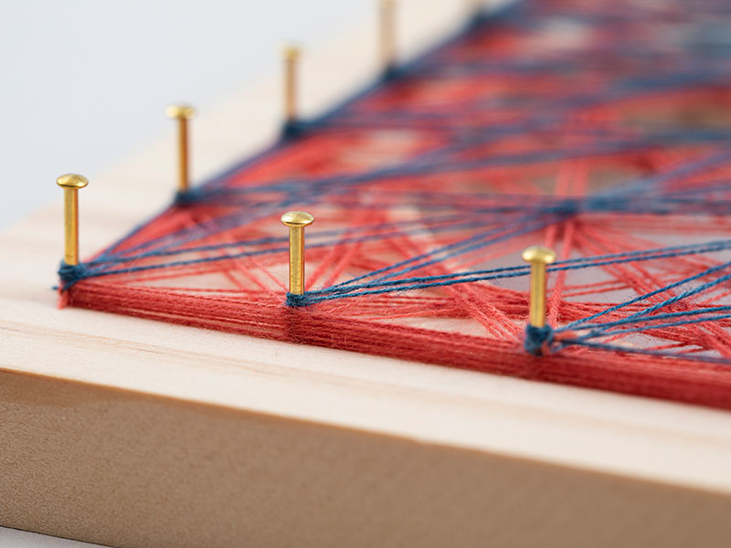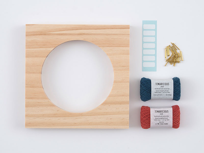 板に打ち付けたピンに、規則的に糸をかけてさまざまな幾何学模様を作り出す「糸かけアート」。花びら模様をアレンジした、和柄をイメージさせるデザインです。TEMARICIOUSさんオリジナルの草木染の糸を使用。透け感のあるデザインなので、ライトを当ててこぼれる光を楽しむのもおすすめ。糸を掛ける順番で、華やかに、クールにと、まるで違った雰囲気に仕上げることもできます。わかりやすいいワンポイント動画つきです。