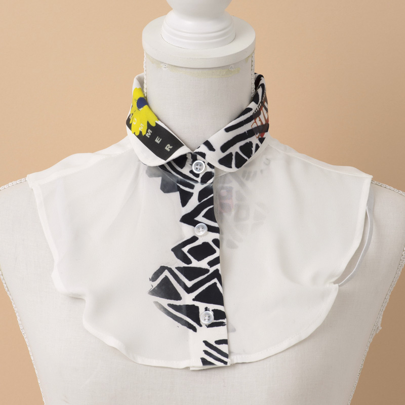 【キット作り方つき】完成済みの替え衿の前面や背中、衿部分に転写用シートの模様をアイロンで転写して作ります。脇はゴムで留められるので、セーター下などに着用しても、もたつきません。