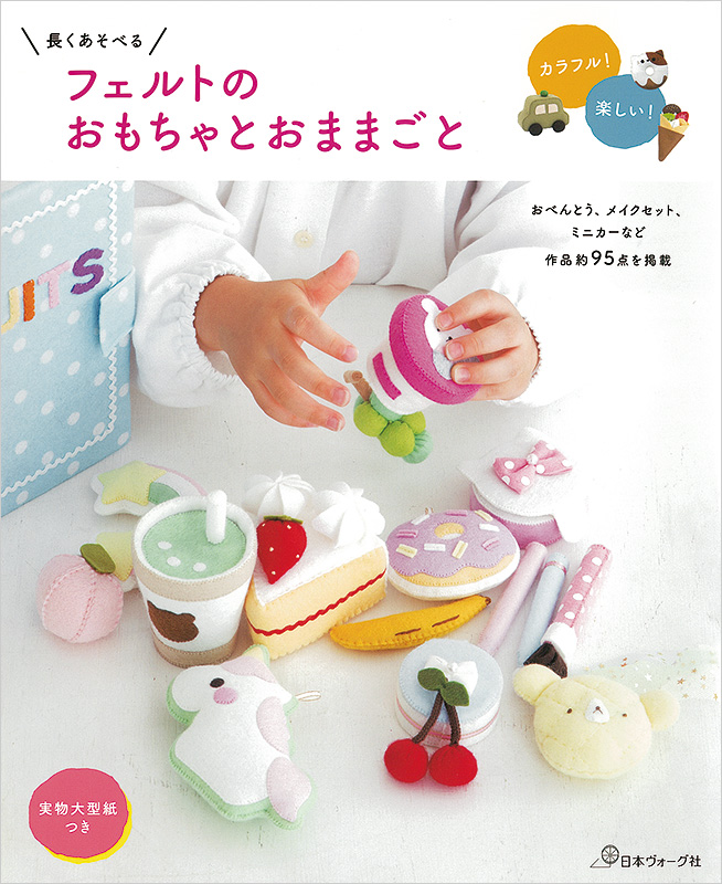 フェルトで作るおべんとう、やさい、フルーツ、のりものなど、22の楽しいシーンを提案。きれいな形に作るためのプロセスレッスンも充実しました。人気作家のフェルトの色使いも見どころの一つ。見て、作って、あそんで、飾って、子どもから大人まで、長く楽しめる一冊です。全95点の作品を掲載。