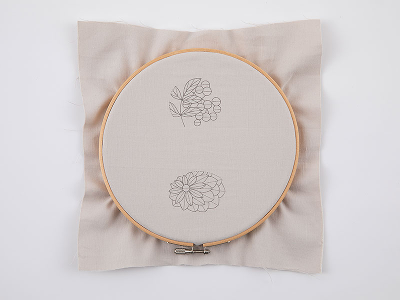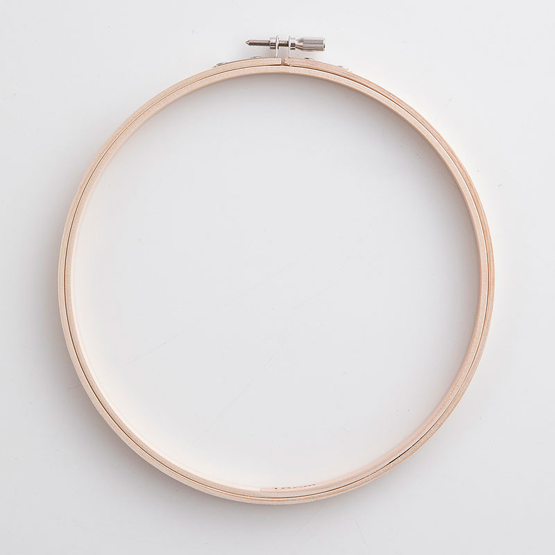 このキットでは、特別な枠は不要です。お手持ちのちょっと大きめの刺繍枠(直径18㎝くらいが理想)でOK。