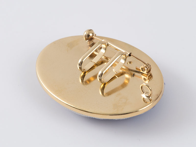 モダンなデザインのブローチは、和装はもちろん洋服に合わせても素敵。金具は帯どめ・ブローチ両用タイプを選びました。