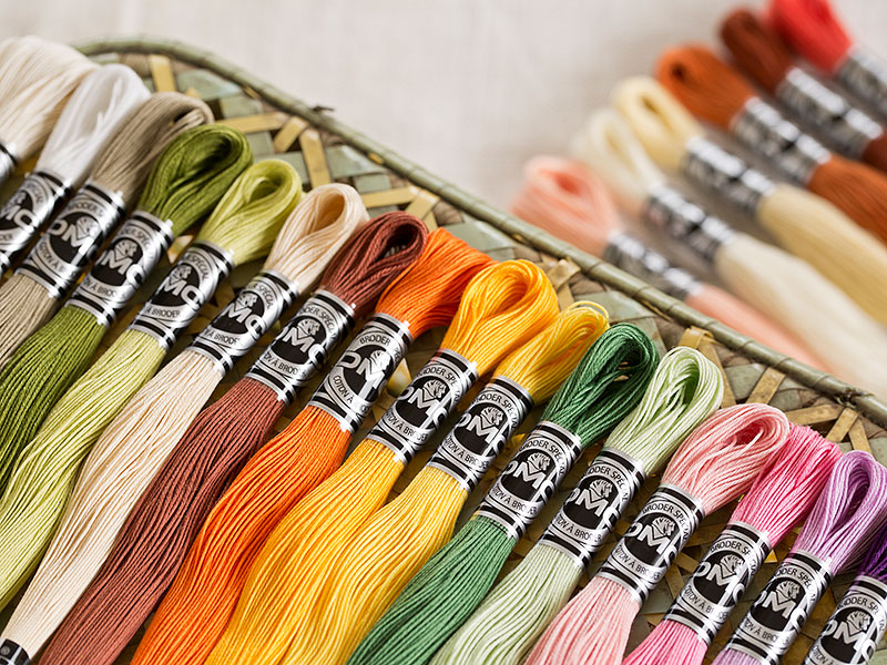 初心者さんにも扱いやすい、フランスの老舗刺繍ブランドDMCのコットン糸をセットしています。