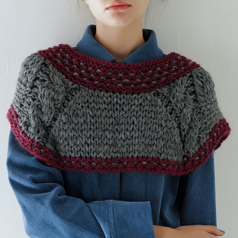 材料:ラナガット アルパカスーパーファイン グレー(7612)90g/2 玉、えんじ(8477)40g/1玉。