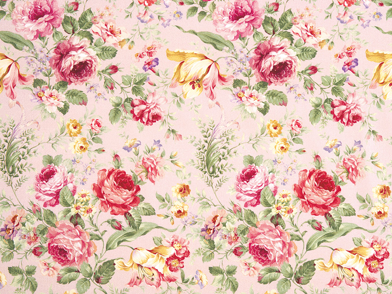 【デジタルプリント】淡いピンク地に優美な花々を散らした大柄布です。バッグやインテリア小物作りに。