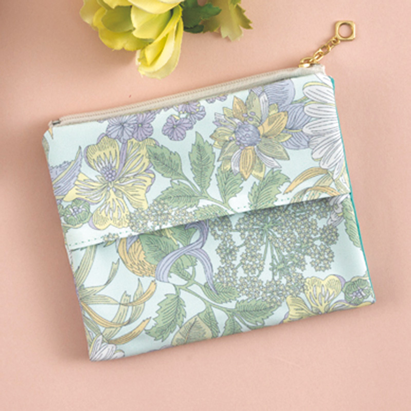 【完成品】表にエステルツイルのリバティプリント、内側に抗菌・防臭性のあるバイオライナー生地を使用したマスクポーチ。予備や外したマスクを清潔に美しく収納できます。