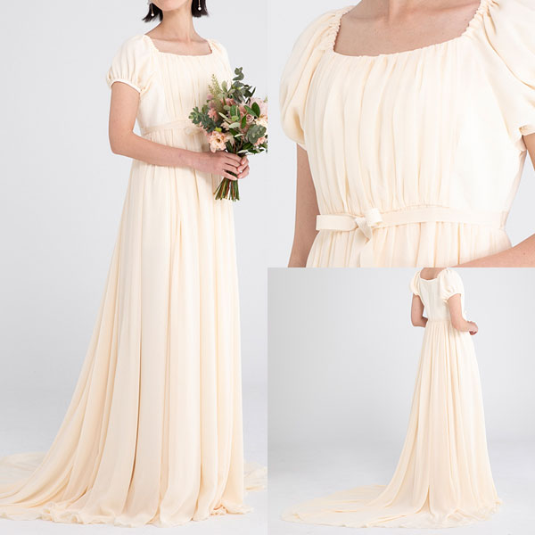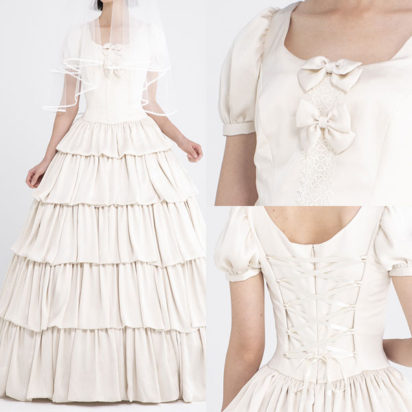 トップスとスカートを組み合わせできるデザインと、プリンセスドレス、エンパイアドレスを掲載。さらに、ベールや手袋、リングピローなどの小物の作り方も掲載。補正のコツや、布の種類など、ドレス作りが初めての方にもわかりやすいように解説しています。7~15号サイズ、実物大型紙3枚つき。