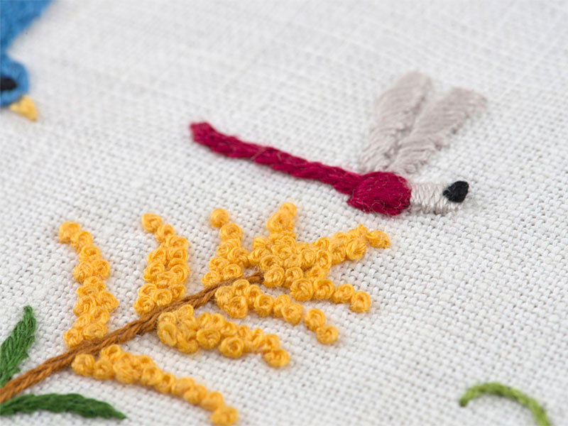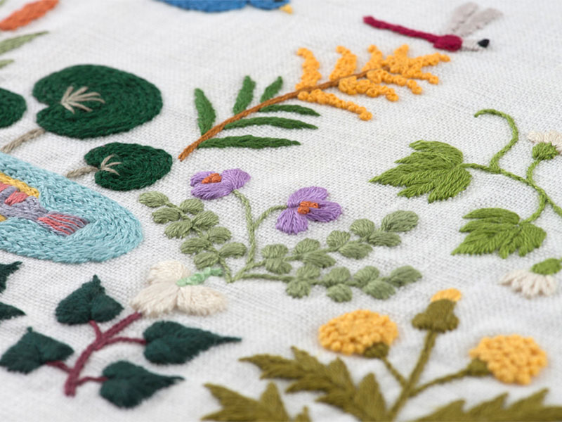 いろいろな草花が図案に入っているので、一つずつ丁寧に刺していきましょう。