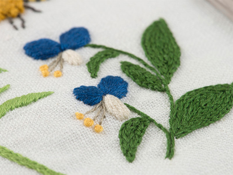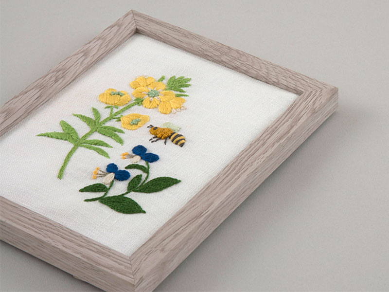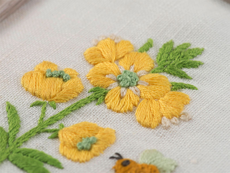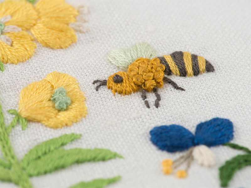 ミツバチのフレンチノットステッチは4本どりの糸で3回巻。ボリュームたっぷりです。