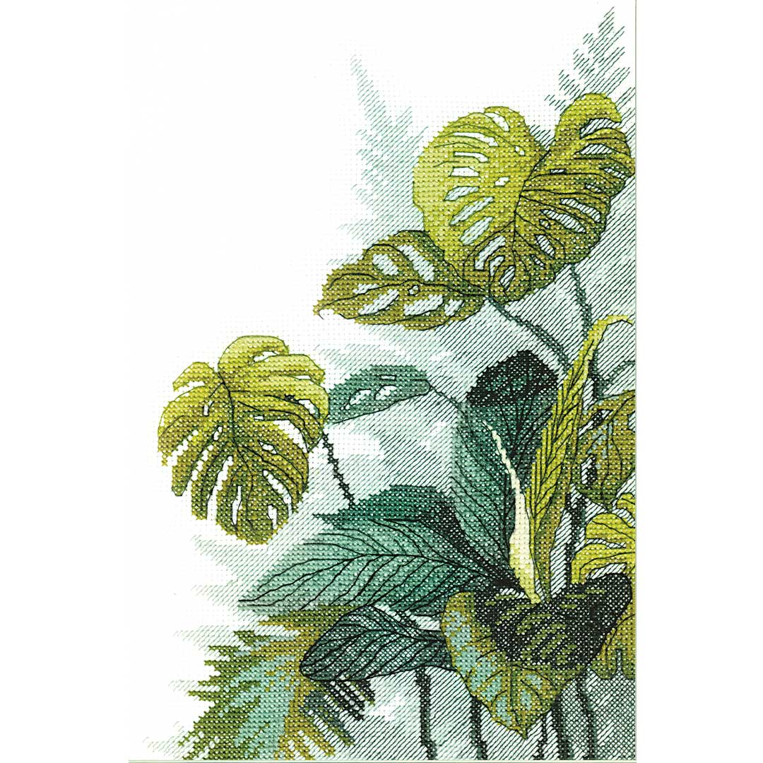 南国植物を描いた、モダンな印象のクロスステッチ作品です。中級の方向き。