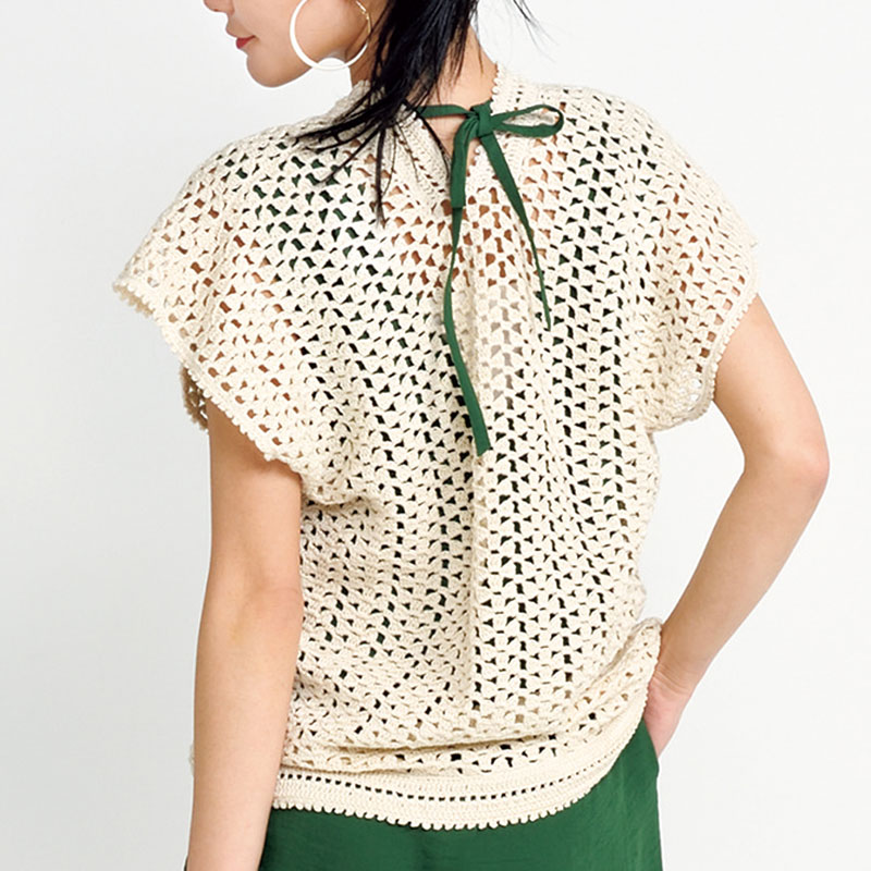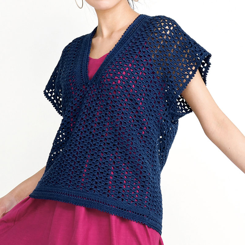 普通丈バージョンは、きちんと脇をとじた定番のスタイル。ロング丈バージョンよりも衿ぐりを深くし、衿元のおしゃれを楽しめるようにしています。シンプルなワンピースと合わせれば、着こなしの幅が広がります。