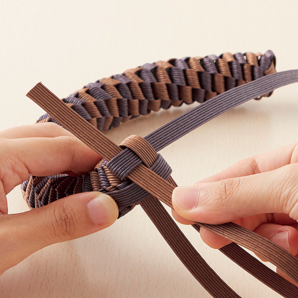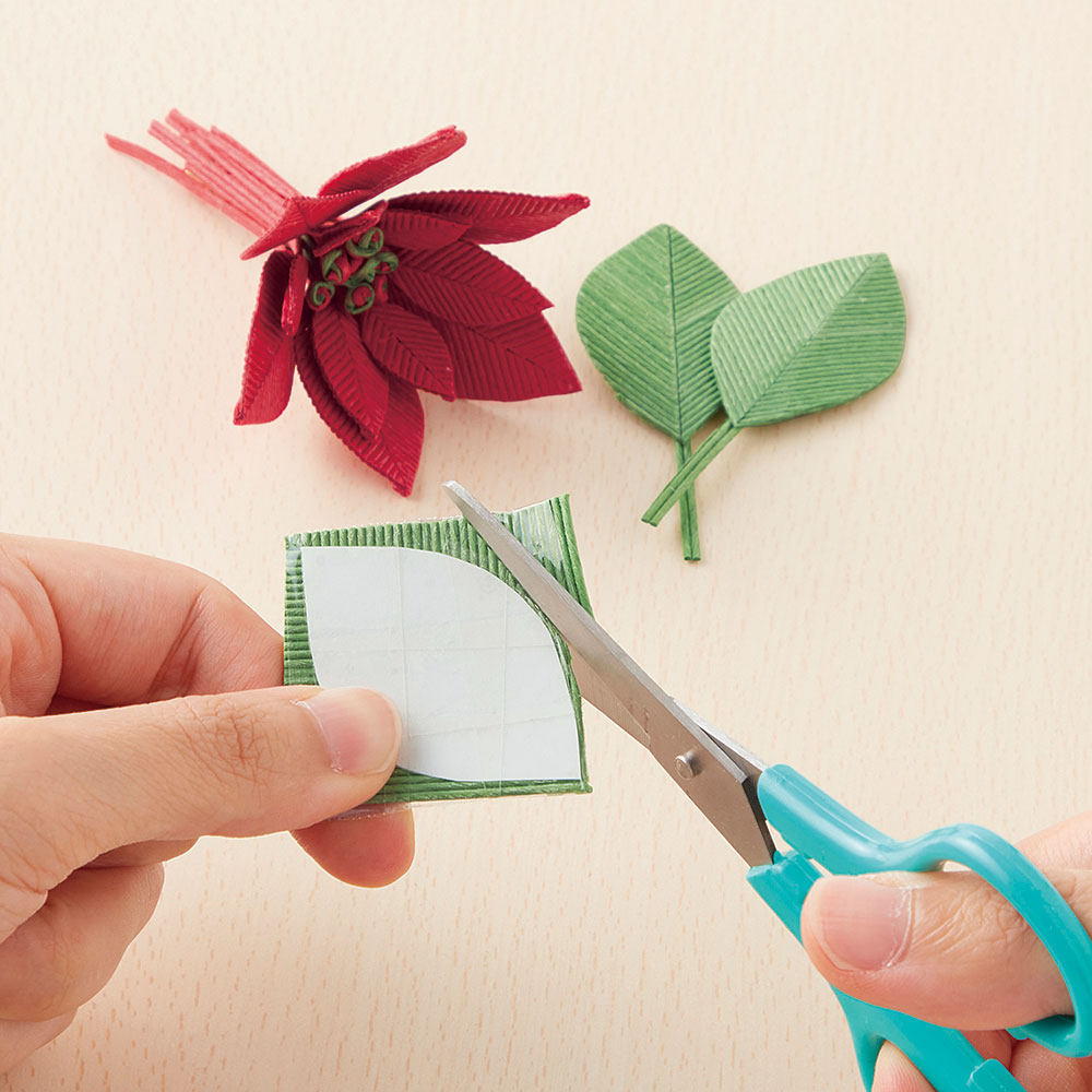 しなやかなクラフトテープを巻いたり編んだりしながら、花や葉、小物を丁寧に形づくっていきます。