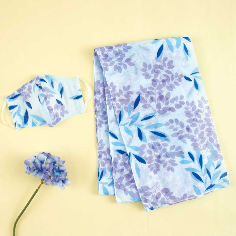 【完成品】【限定150セット】暑さ対策にも冷房除けにも重宝するUVケア加工の大判ガーゼチーフと、抗菌加工を施したお揃いのガーゼマスクのセットをご用意。マスク裏面はダブルガーゼです。