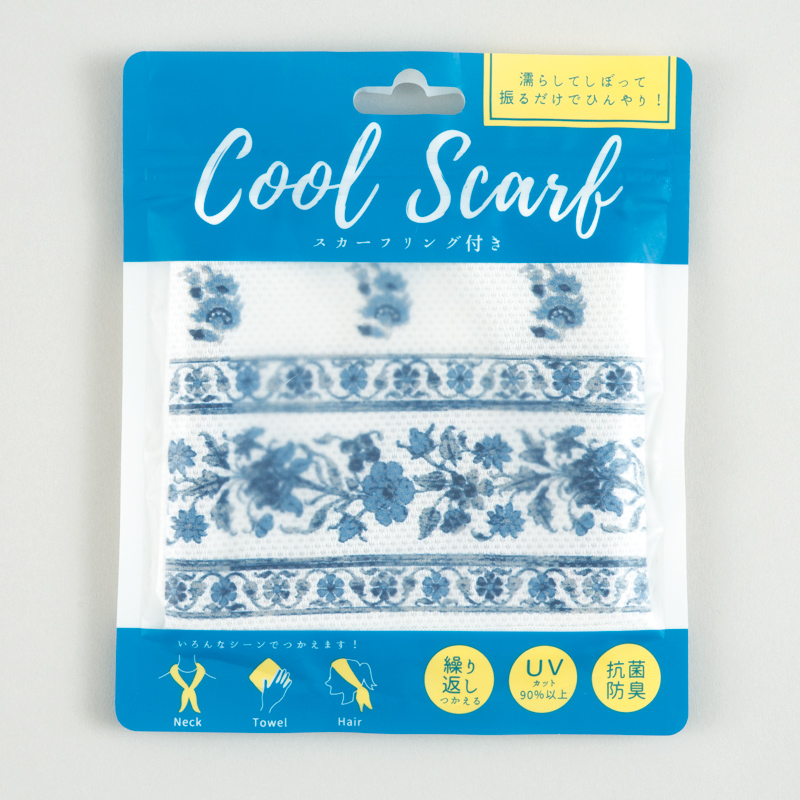 【限定50】【完成品】そのまま着けてもさらり涼しく、水で濡らして絞って振るとひんやり冷たく感じられるスカーフです。おしゃれしながら夏対策ができます。汗拭きタオルとしても。