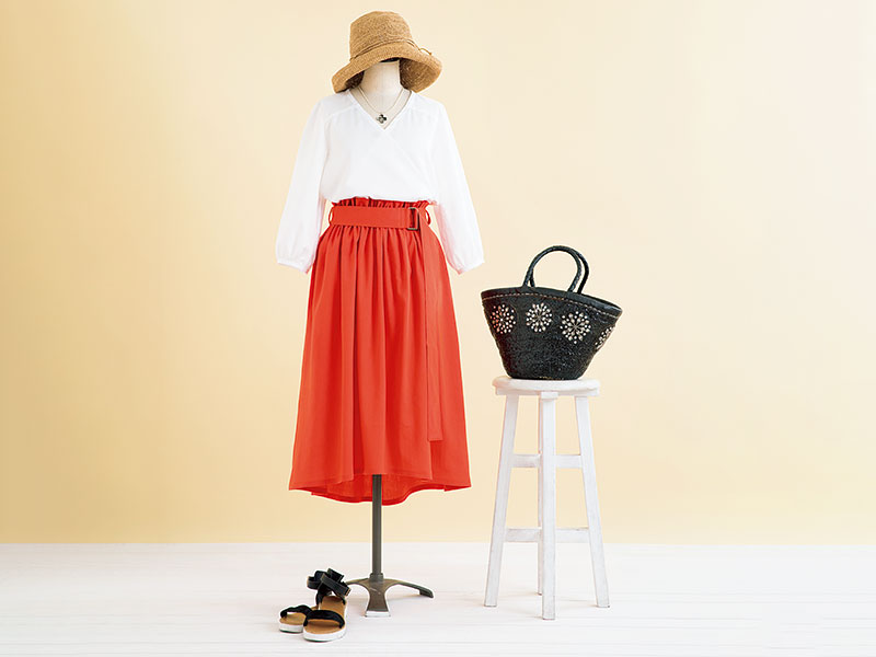 スカートとコーディネートしたカシュクールブラウスの型紙もあります。