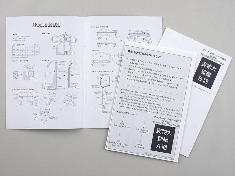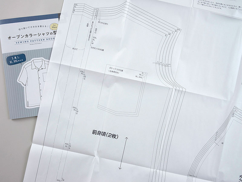 切り抜いて使える(写す手間が要らない)実物大型紙と、作り方のイラスト解説がセットになったシリーズ。シリーズ初の「メンズ」アイテムとして、ベーシックなオープンカラーシャツです。布次第ではアロハシャツ風にも作れます。S・M・L・XL・XXLサイズを掲載。女性がオーバーサイズぎみに着るのも素敵です。