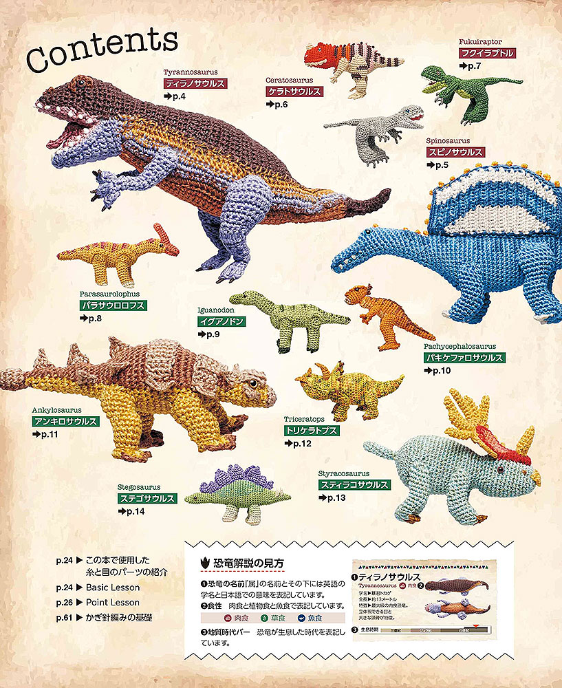 かぎ針編み 刺しゅう糸で編む ミニチュア恐竜図鑑