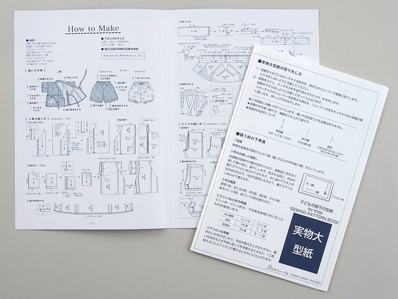作り方はイラストで丁寧に解説。実物大型紙は1枚ついています。