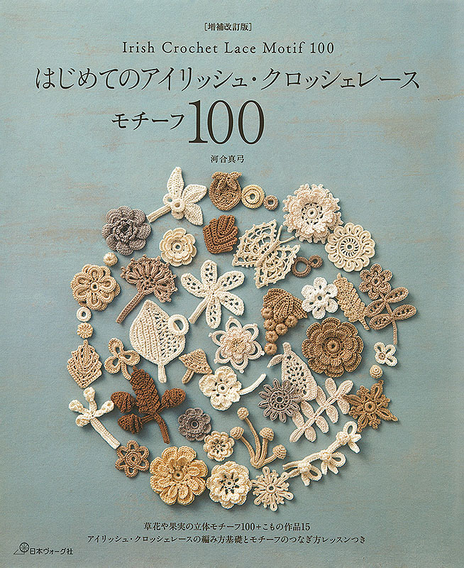 ニット作家 河合真弓著のアイリッシュ・クロッシェレースの人気レッスンブックを、モチーフ集として装いを新たにリニューアル!