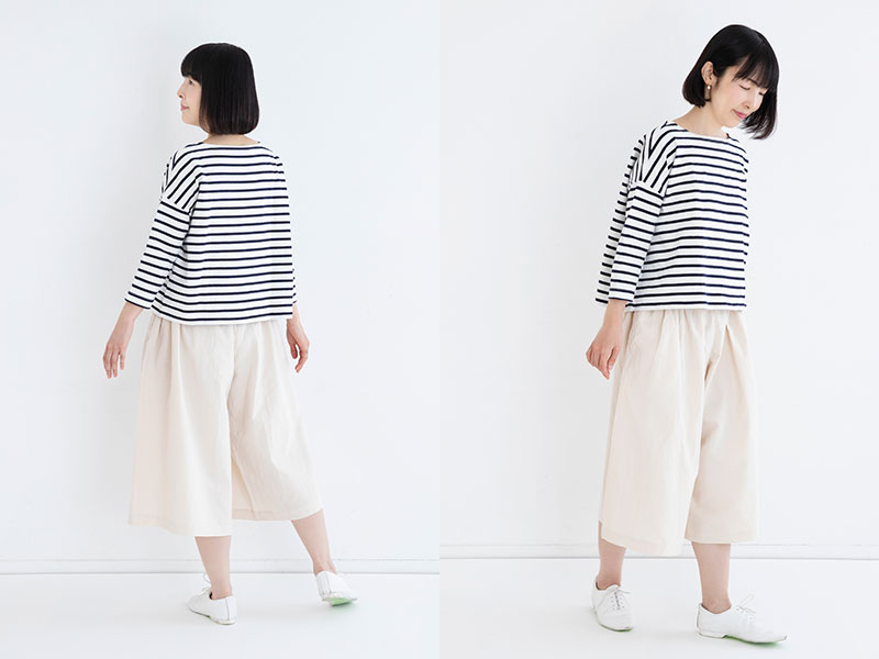 左右のパンツは前後の股下がつながっているデザインなので、縫う箇所も少なく、仕立ても簡単です。